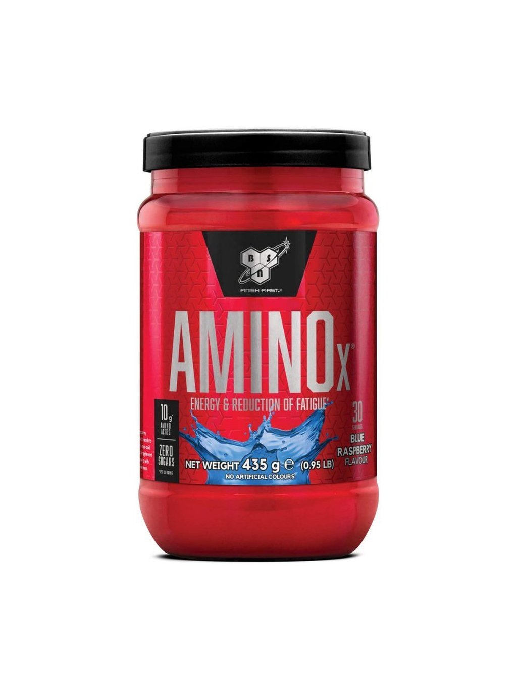 Aminokyselinová směs Amino-X® (L-alanin, taurin, L-citrulin), směs BCAA (L-leucin, L-isoleucin, L-valin), regulátory kyselosti: kyselina citronová, kyselina jablečná, hydrogenuhličitan sodný, aroma (modrá malina), protispékavá látka: oxid křemičitý, sladidla: sukralóza, acesulfam K, barvivo: brilantní modř FCF, vitamín D (cholekalciferol), vitamín B6 (pyridoxin hydrochlorid).