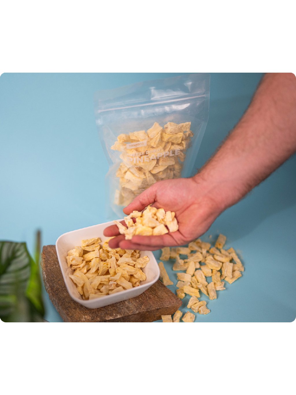 Lyofilizovaný ananas – kousky (100 % ananas).